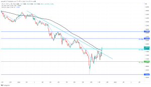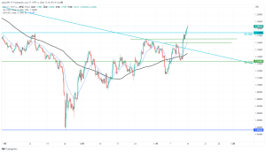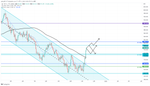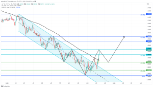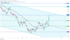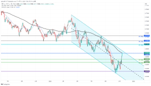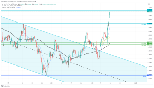 日足での下降チャネルを上抜けした。
