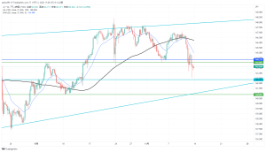 ただいまの価格帯に移動平均線があるのでここから少し反発する可能性もある。
