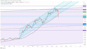 トレンドラインを下抜けしたので下に行く可能性が高いかなと思っている。
